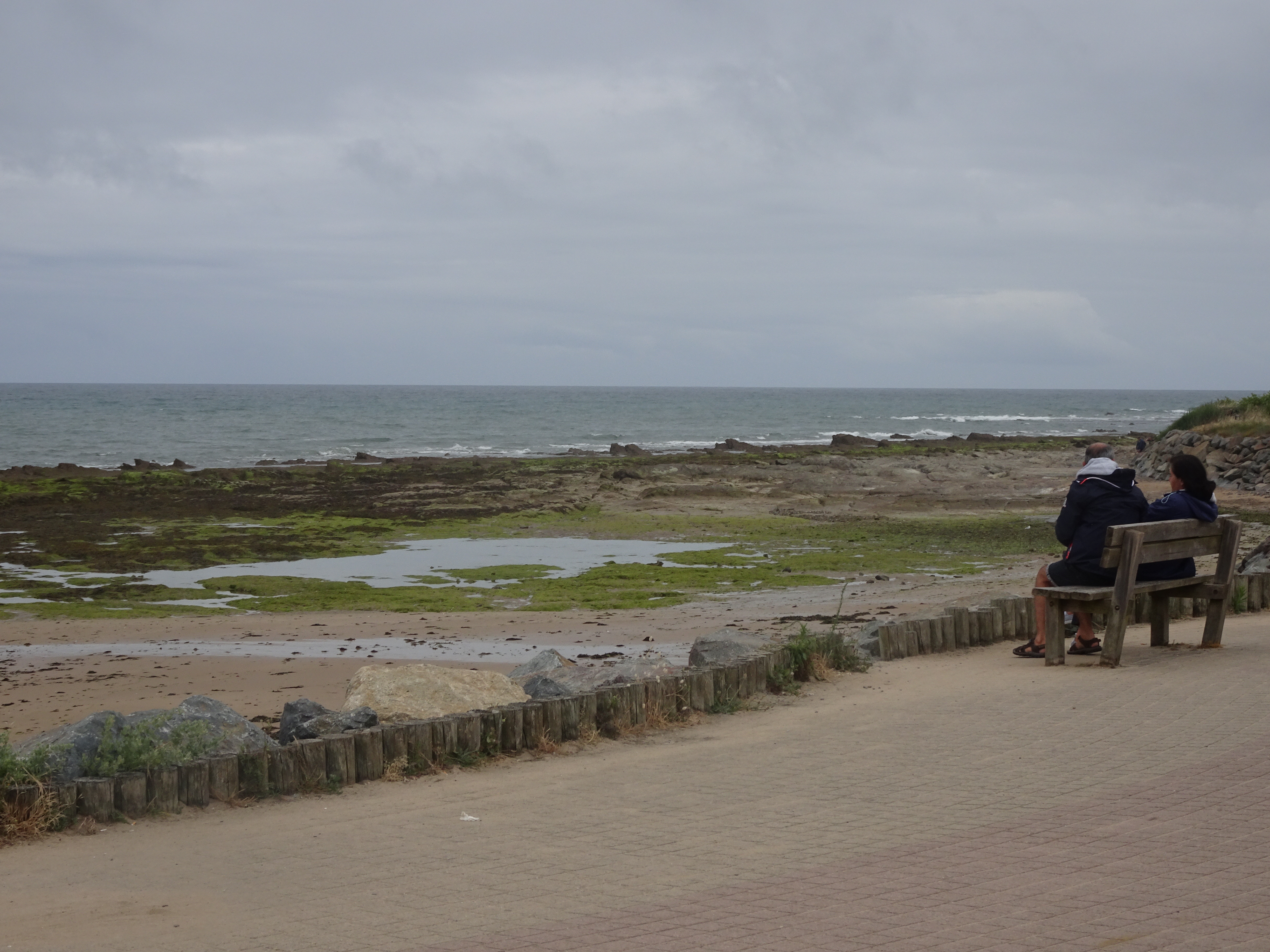The site just outside Bretignolles, Cabestan, is much smaller than those we’ve stayed in so far this trip. Allegedly [acc to ACSI], near to town, it’s actually a substantial walk or cycle to both the seafront and the centre; but having parked up we set off to look at the beach, attempting to follow the map we’ve been given but getting confused all the same. The route starts in residential streets, the white, single storey homes almost identical with blue shutters and front doors. We spot one with grey paintwork and another with pink, so clearly there are a few rebels among the residents.
