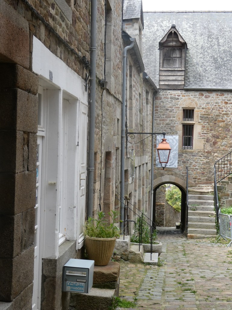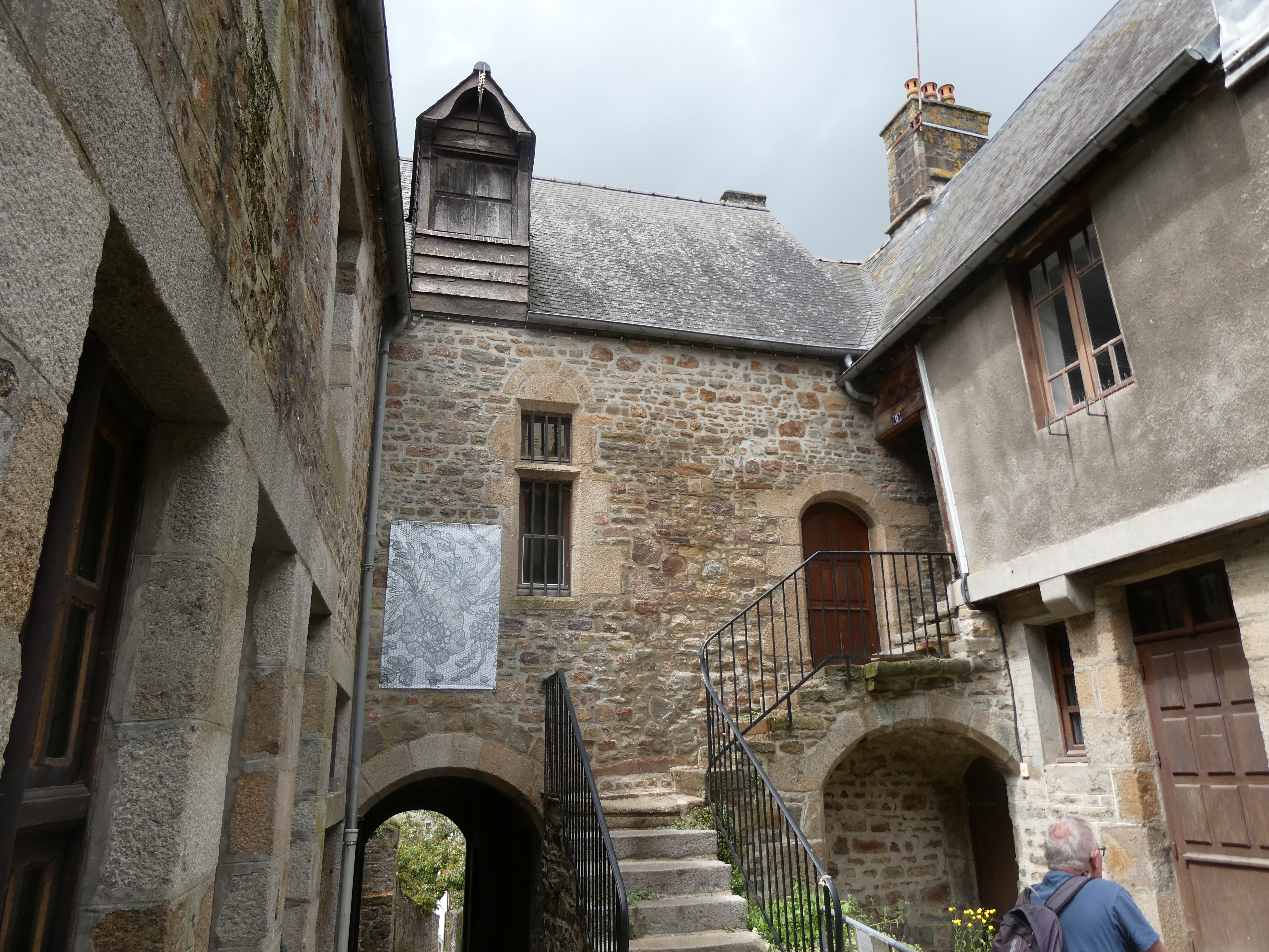 Next day we’re in need of a walk, so after lunch we set off to explore Villedieu les Poeles, which rewards our efforts with loads of interesting and historical information. Iy used to be a town of copper foundries, in particular the making of bells, and the copper workers lived in small courtyards accessed by passageways, which are still there. The courtyards consist of small stone houses with external staircases and many connecting alleys and passages.
