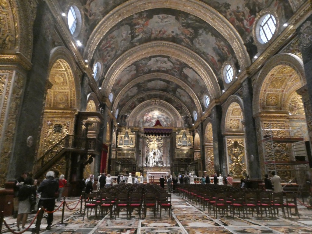 On the way back along Republic Street, we decide to join the queue outside the cathedral, since it hasn’t grown. We reach the entrance and get a bag search then enter the cathedral- and it is breathtaking, every surface an intricately decorated work of art. The floor consists of colourful scenes in marble, the main body of the building a riot of silver and gold, each tiny chapel encrusted with decor and the ceiling astonishing.