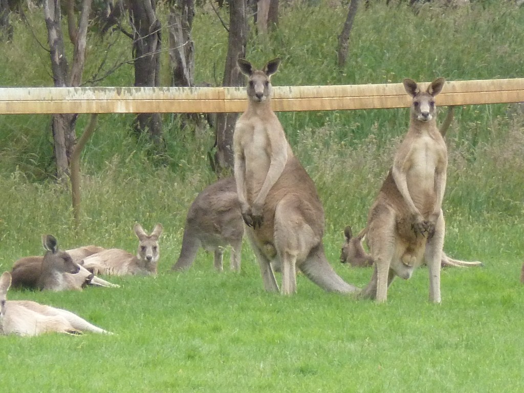 One odd anomaly about our travels in Australia until then was that we’d seen almost no kangaroos- animals I’d expected to have seen almost daily. But here, at last, we were treated to sightings of dozens of the creatures, lounging about casually or standing brazenly to gaze around them.