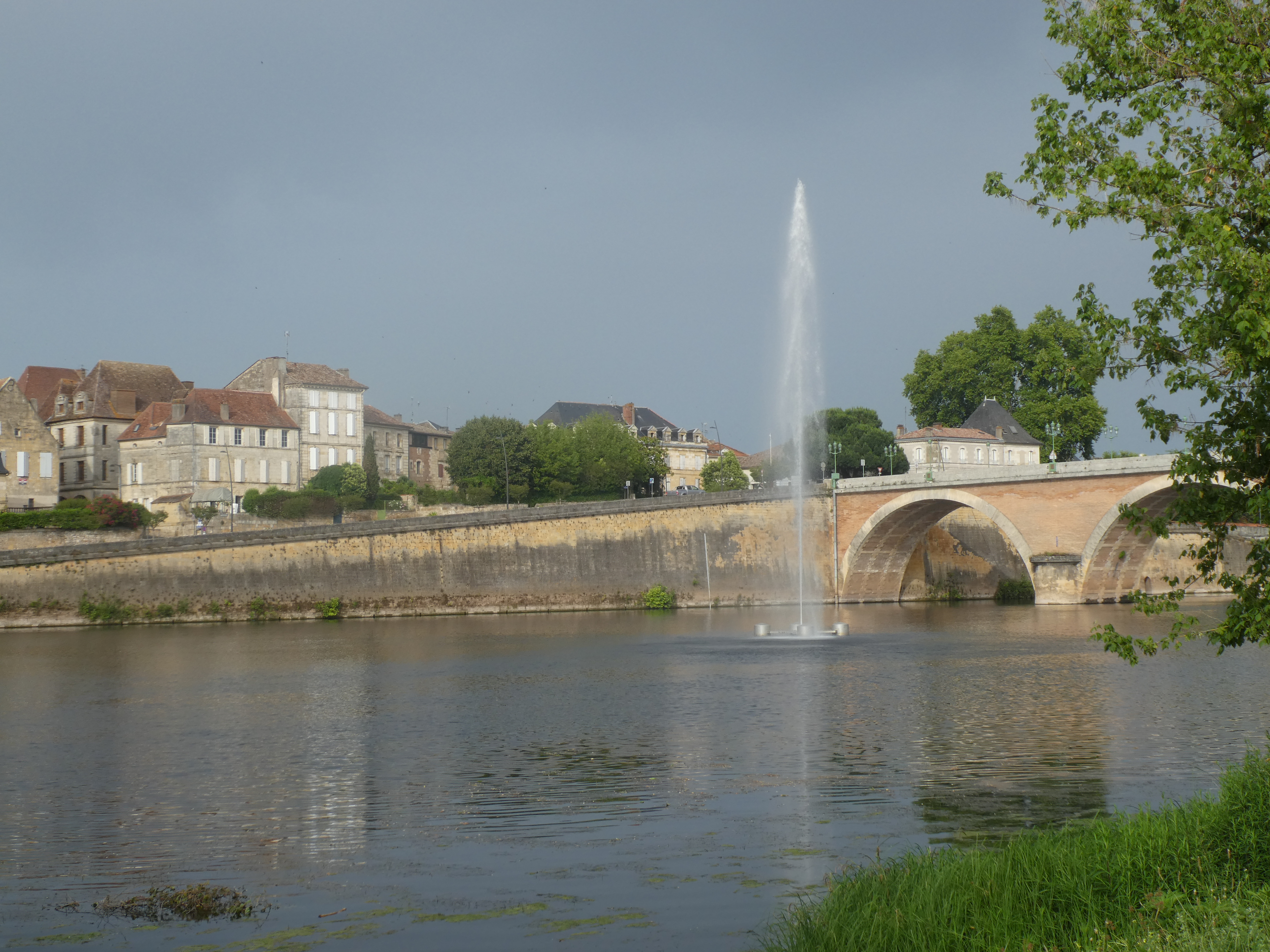 In the Bergerac site, we spend our entire day under the shade of the trees, waiting for the heat to subside enough to be able to walk along the footpath, over the bridge and into town. At seven in the evening we decide to make our attempt. We’d already strolled around the area on ‘our’ side of the river, although the few bars and cafes had been closed on the Monday evening, a commonplace event in France.