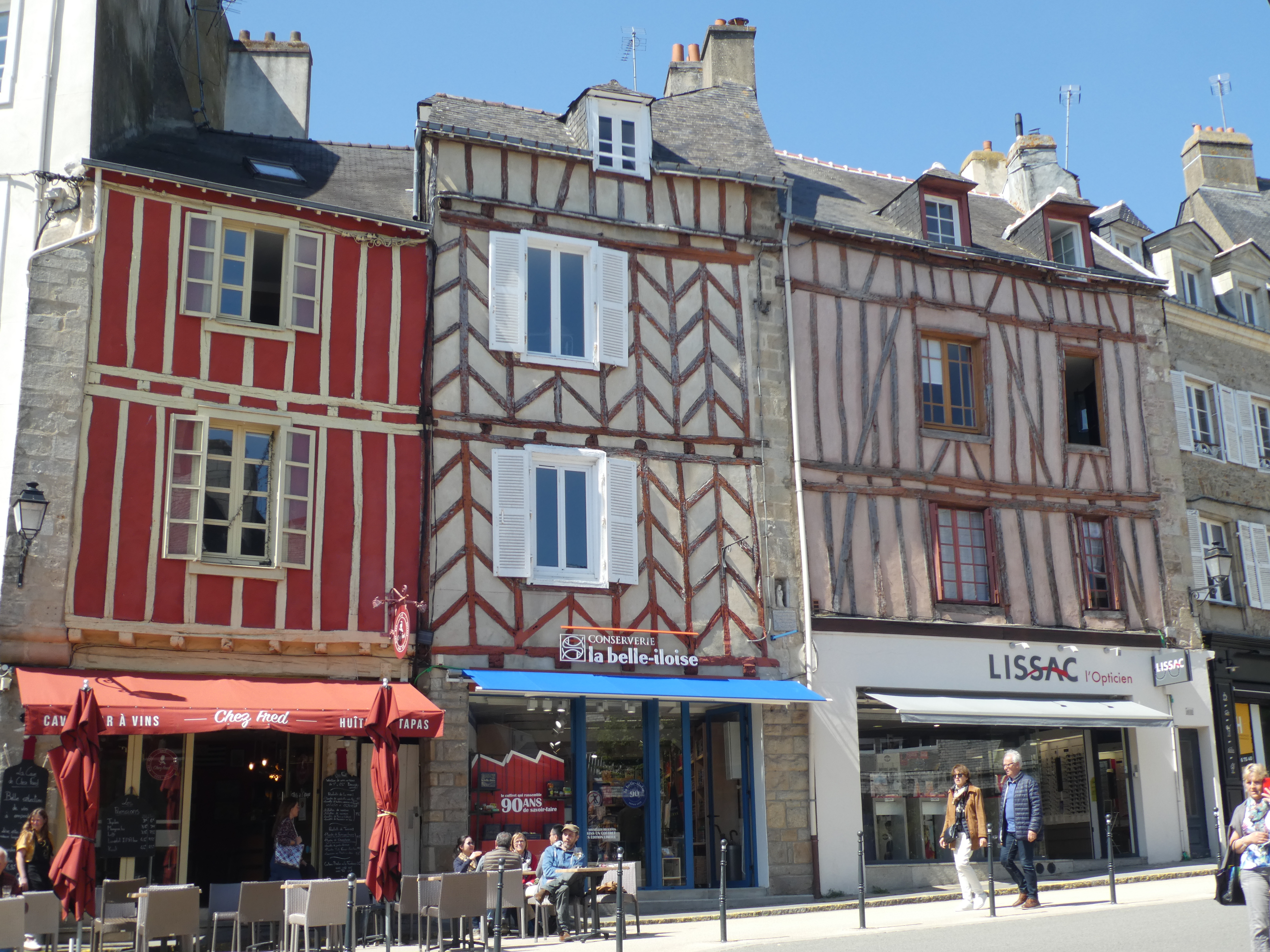 Vannes has a lovely network of ancient, half-timbered buildings lining its streets and a huge castle with attractive gardens. Near the top of the town lies the gothic cathedral. Everywhere is thronged with tourists, in and out of the gift shops or sitting outside cafes in the sun.