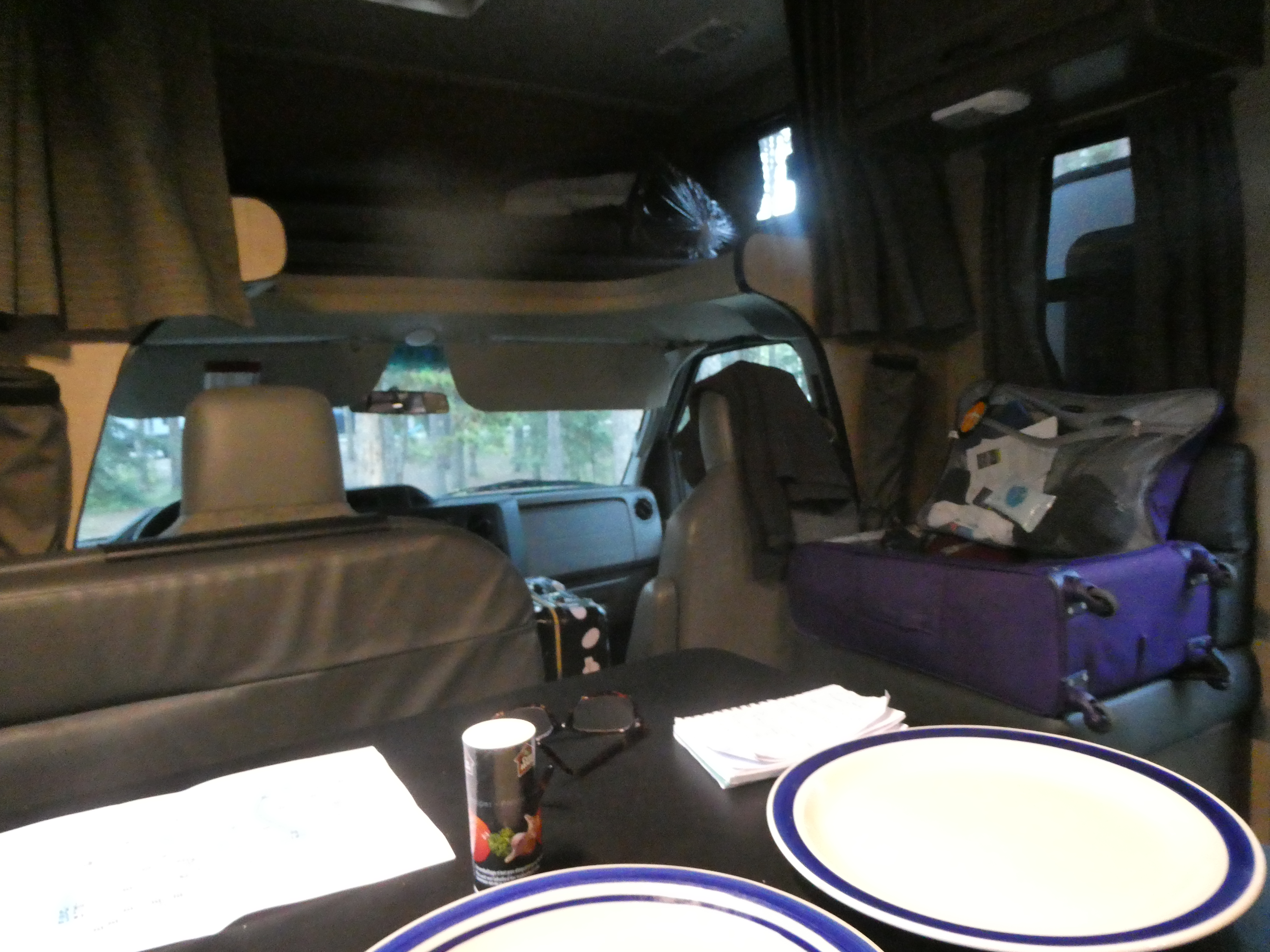 Next day we retrace our steps- station- station and return to the van [hopefully]. En route I do experience some trepidation. What if it’s been robbed? Or vandalised? But no- there it is, squeezed into the little ‘Just Park’ space in the housing estate with no ill effects. And it’s cool, too, from having had the curtains drawn. Phew!