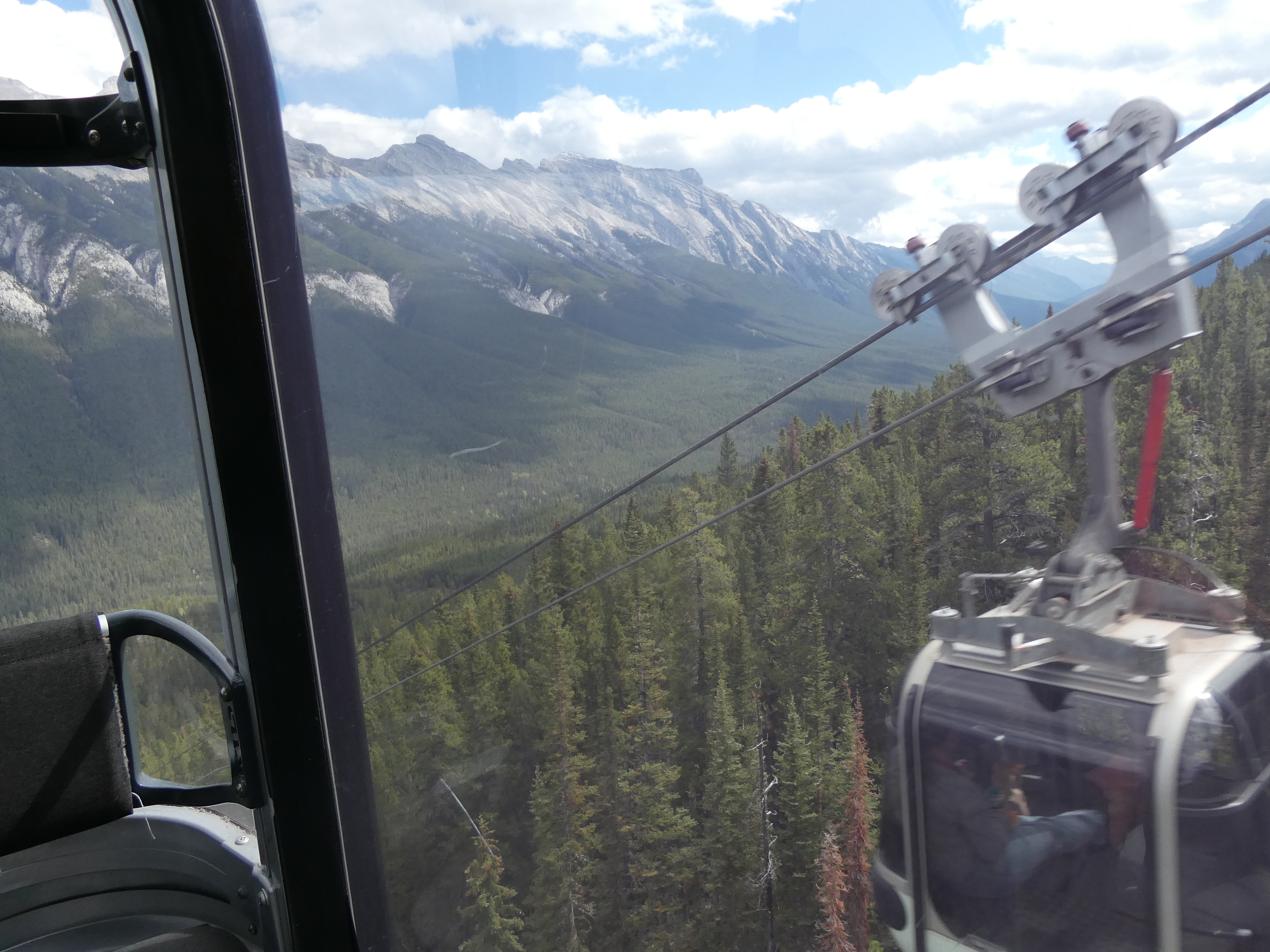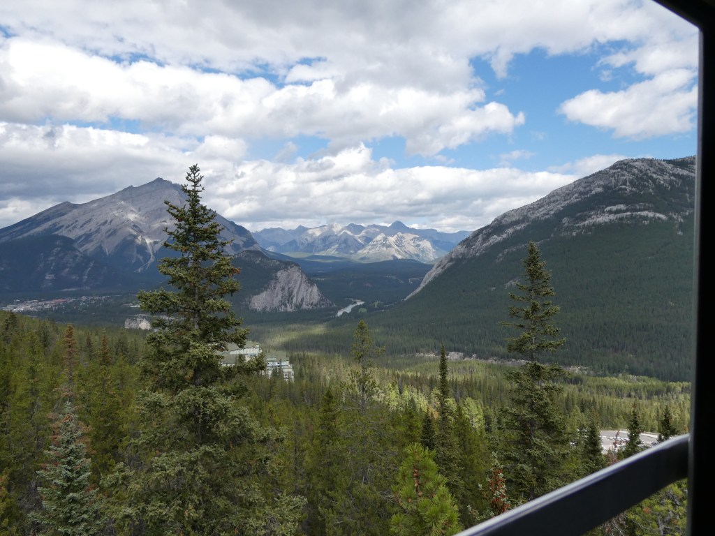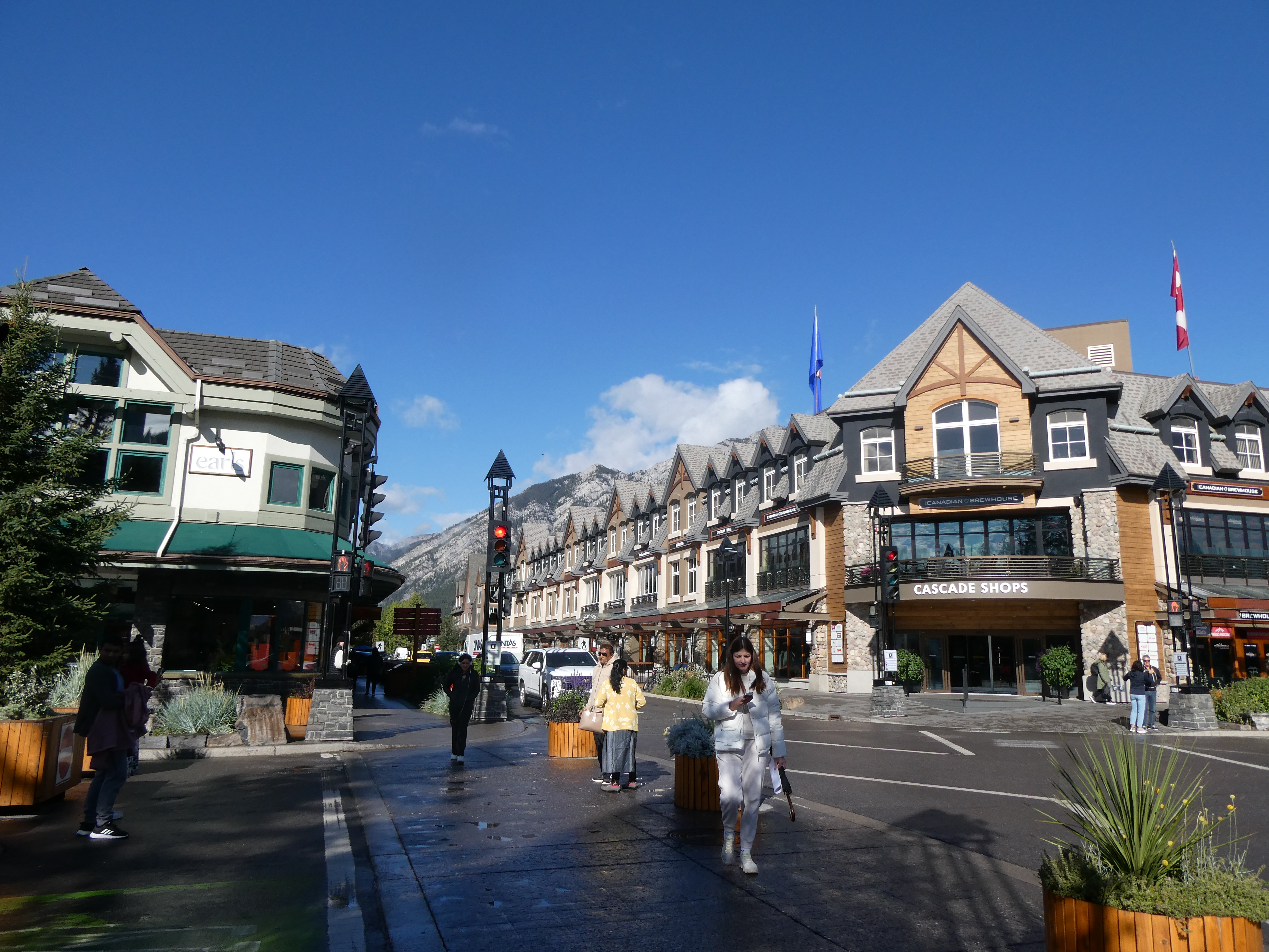 This first look at Banff marks a transitional bit of our trip, as we’ve now finished the train journey, but is also a mini-break in itself, as we are booked to travel up Sulphur Mountain on the gondola. But it’s not until the afternoon, so we can get a coffee from the hotel’s coffee shop then get the shuttle bus, for which we have passes, down into Banff.