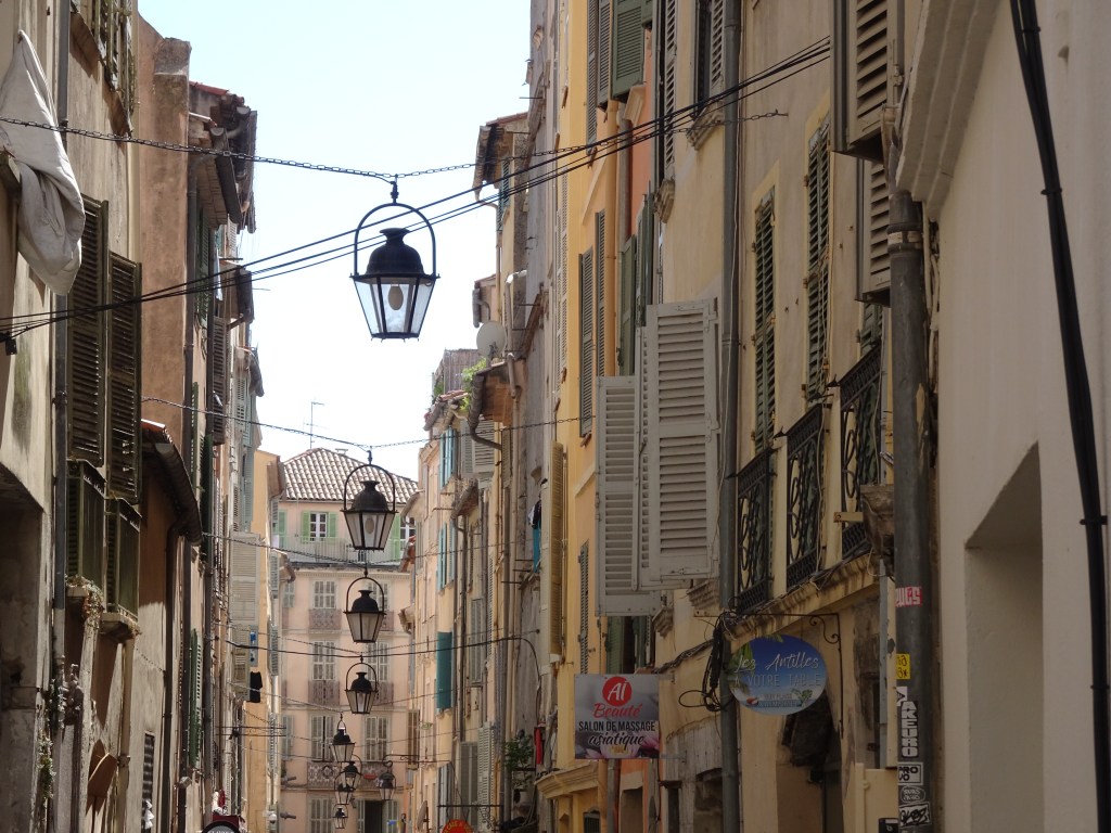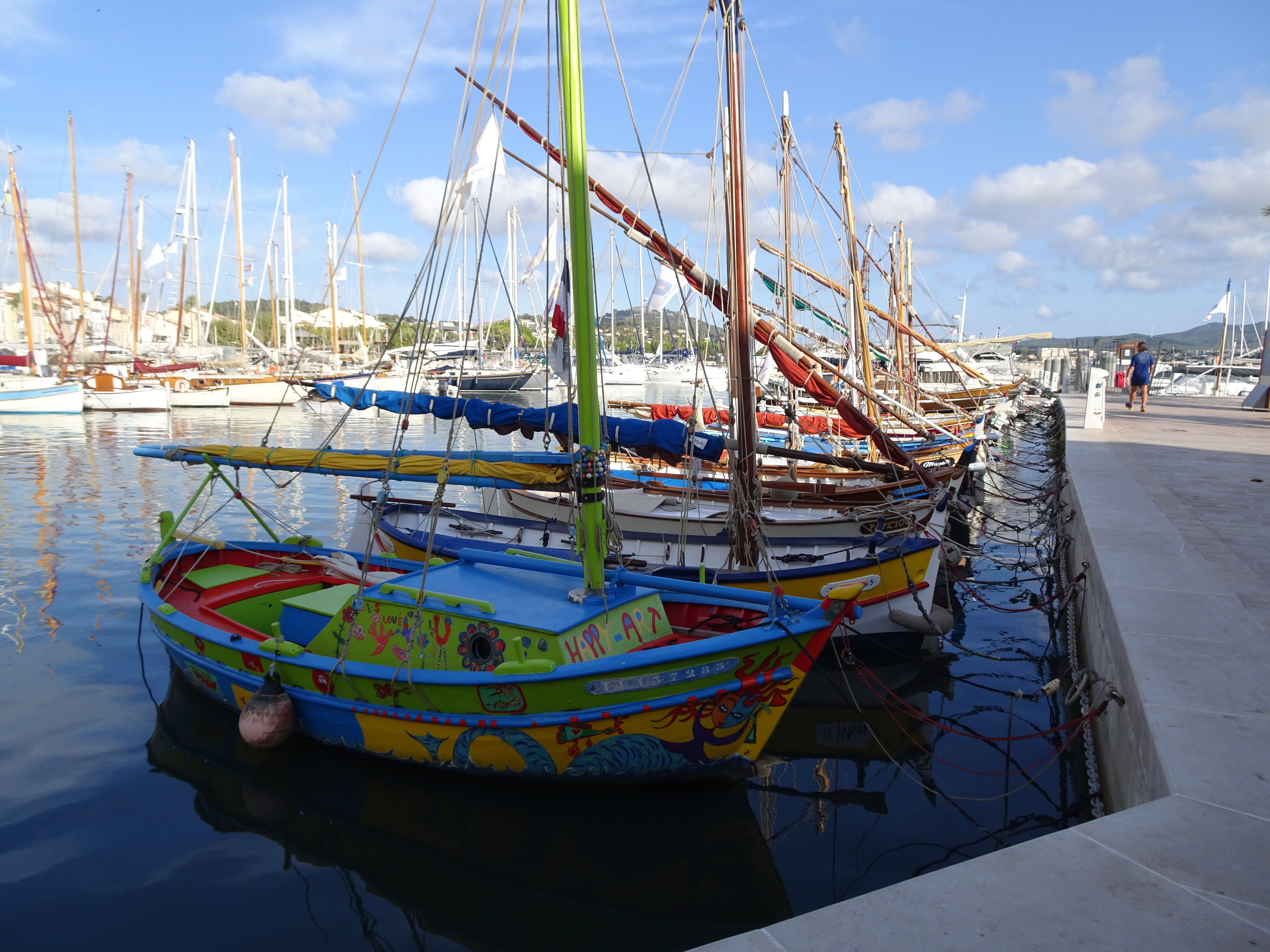 In the morning it’s time to move on again- to a seaside site at Sanary-sur-Mer, typically Riviera and with a sweeping quayside of restaurants and bars- a poser’s delight. We walk down the steep hill to explore the town, where stallholders are setting up for a night market. There seem to be large numbers of slender, elegant, smartly dressed single ladies here, Husband’s suggestion being that they’ve ditched their rich husbands, mine that perhaps they were never married to begin with. Husband thinks perhaps he’ll become a gigolo and I tell him that then I can ditch him, too…
