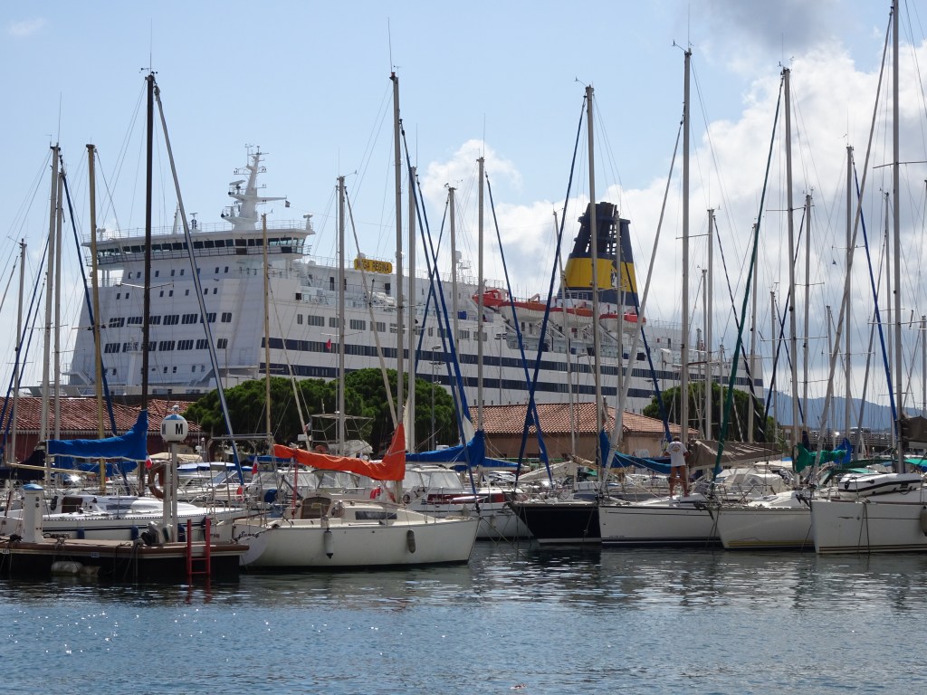 We have one day left before we must leave mainland France, the ferry departing from Toulon. We’re in close range and get there in an hour or so, locating an aire where we can park to look at the town. But it’s hot and hard work and Toulon is not such a tourist draw as we’d imagined, so much of this stifling day is spent in chairs in the shade of the van until we go across the road to a fast food cafe and get burgers- greasy but essential. We won’t be embarking until 11.00pm.