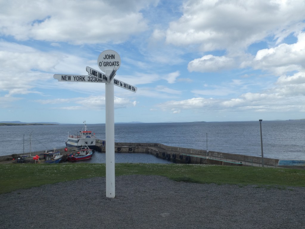 We are heading for Thurso but opt for a detour to John O Groats due to its status as furthest North on the mainland. The road narrows and the hillsides are a mass of golden gorse as we follow the coastline, until at last we turn towards John O Groats and join a throng of others enjoying the late afternoon sun at the edge of the UK.