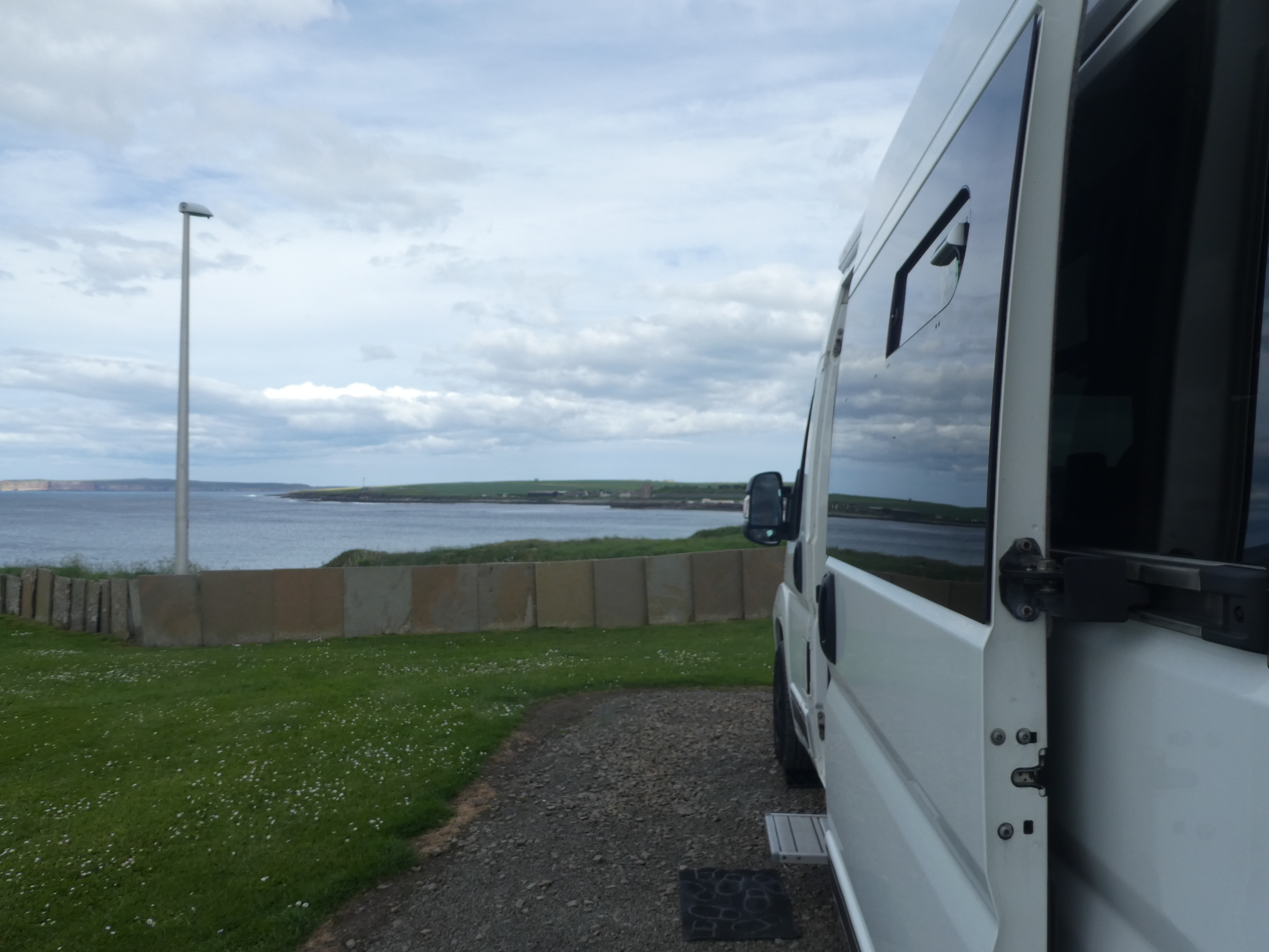 Then we must head off to our site, at Thurso, where our pitch faces out across the bay with a grand view of the Orkney Islands and a cracking sunset. and tomorrow there’s a ferry to catch…