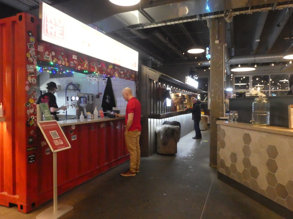 We headed back in the growing darkness, to the lights of Reykjavik and were dropped off near our hotel, thankfully. But rather than go up to our room we trudged round to the Food Hall- a large, blue building on the harbour where the walls are lined with all manner of food stalls and the center filled with long, trestle tables. You choose your cuisine, collect it when ready and can sit together to enjoy your meals. We followed with a hearty beer before returning to our hotel for a late drink in the bar, feeling, at last that we’d had a tiny taste of Iceland…
