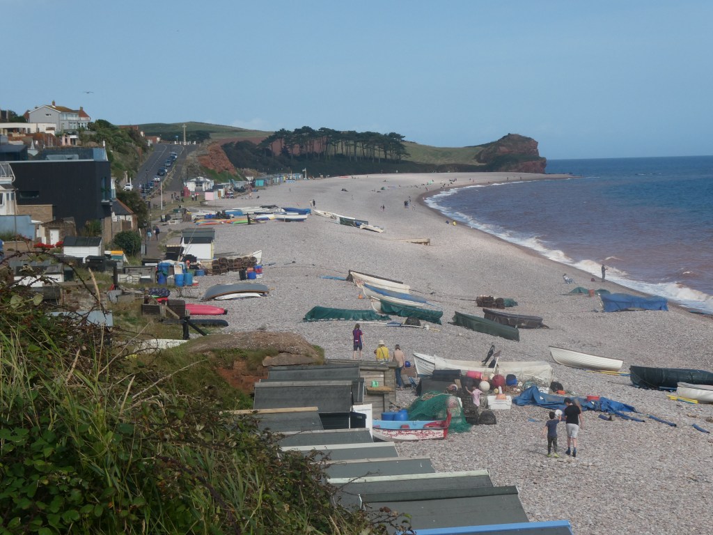 The weather is still good and we’re up for a good walk next day, striking out and up a long hill by the golf course. Once we’ve gained the top there are great views down to Budleigh beach one side and Exmouth the other, then a narrow, downhill track leads to the town. The streets behind the beach offer a few interesting, independent shops as well as a Co-op and the usual crop of charity shops. One tiny shop has attracted a sizeable queue for ice cream so it seems churlish not to join it. The quirky store’s walls are lined with jars of interesting herbs, nuts, spices and pulses as well as old favourites such as peanut brittle, so there’s plenty to look at while we wait.