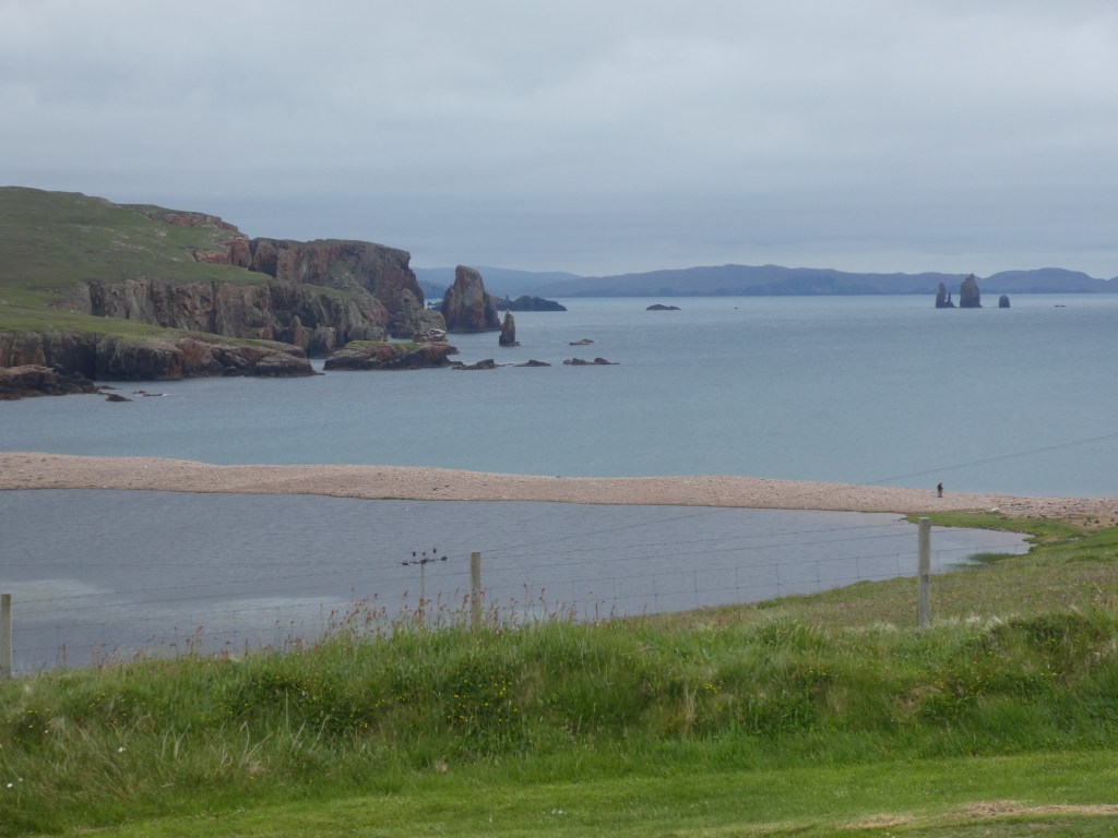 Opposite the airport, and out of sight but not earshot, is a curving, white-sand beach with barely another soul on it. Today is warm and sunny and we opt for a couple of hours enjoying the weather and the view, which takes in Sumburgh Head, topped with a lighthouse. From time to time a plane or a helicopter glides across, otherwise it’s peaceful and pleasant.