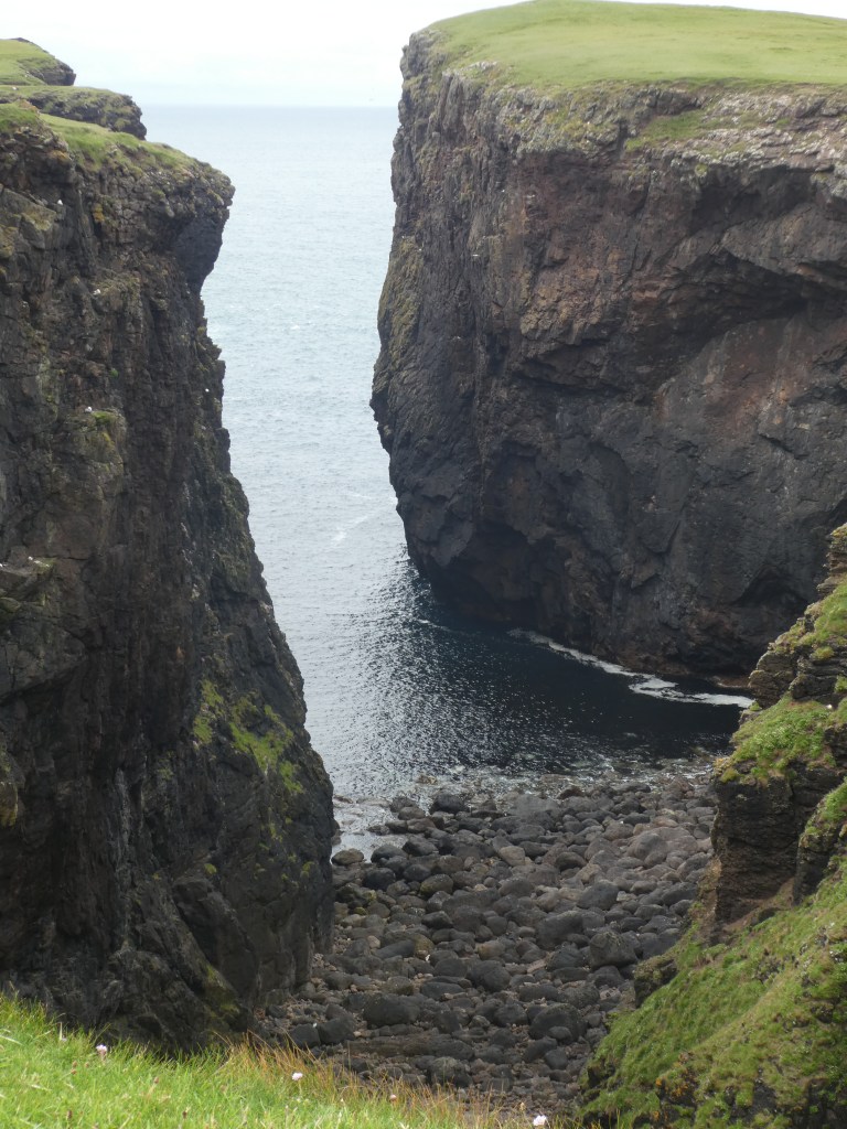 Our stop for the night is at Cunningsburgh, halfway back to Lerwick, another small marina site but with outstanding kitchen and showers.It’s away from the village, which seems to be flung all over the place, but we’ve noticed a sign for ‘designer knitwear’ en route, so we’re planning to stop and take a look.