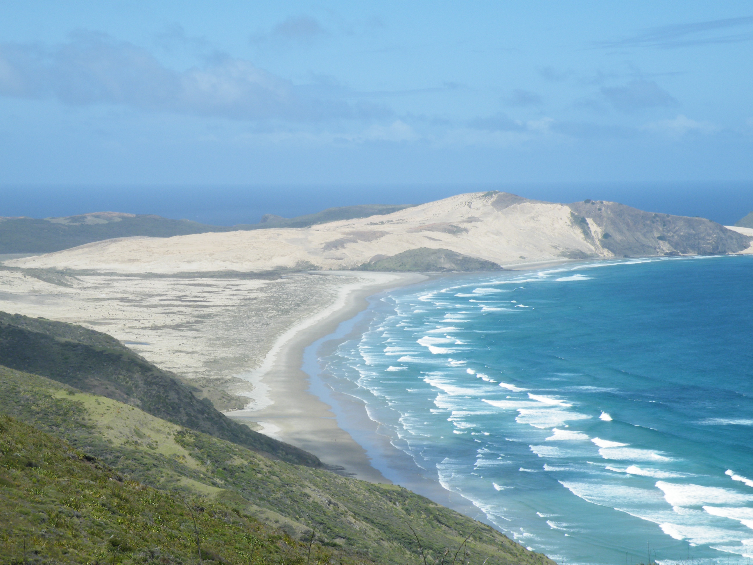 We’d come to the final leg of our New Zealand Odyssey, leaving Aukland to strike out to the country’s aptly named, northernmost part, Northland. Here we motored up to Cape Reinga via ’90 mile beach’, a long, curving stretch of sand up to a headland where two seas meet; the Tasman Sea and the Pacific Ocean. For the Maori these are the male and female seas coming together, ‘Te Rerenga Walrua’, representing the creation of life. Along the way, huge dunes provided a tourist draw for sand surfing, although there were no more than a handful of takers.