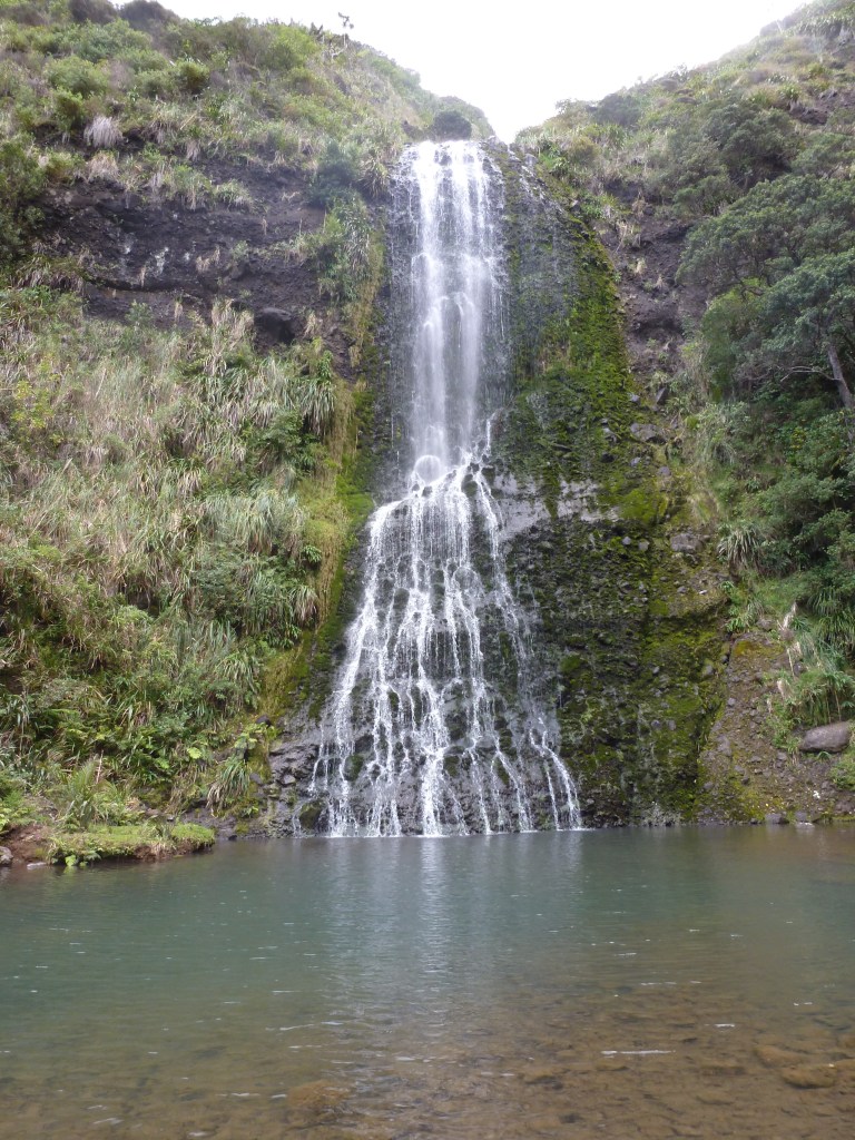 Then we enjoyed a last visit to the beach at Cathedral Cove. I was glad, here that I hadn’t left it too late in my life to visit New Zealand. The climb down to the cove was not for the fainthearted. But once we’d got there we could understand how it got its name, as the rocks have formed a cave with a vaulted ceiling, as if a demented architect had been down here and built a huge temple on the sand.