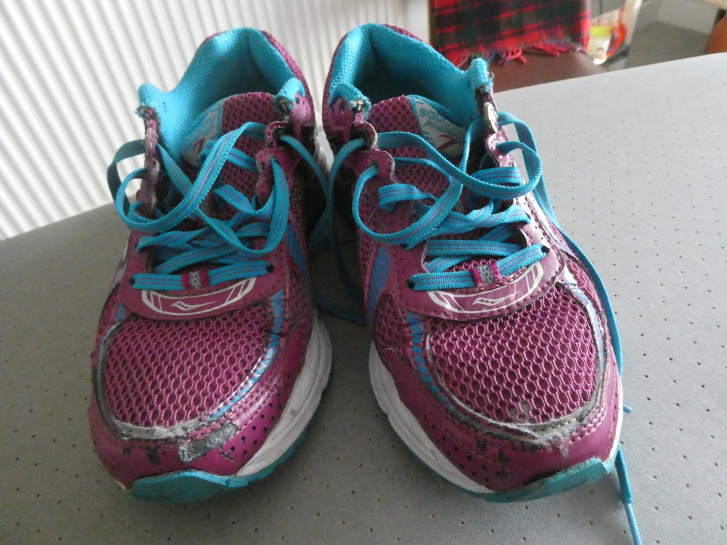 EXCEPT; Here’s the thing. I realised my beloved trainers- the ones I went to the specialist running shoe shop for because I pronate, have worn out, demonstrated by the fact that my toe is poking up through the worn fabric and the plastic toeguards are coming away. How long have I had them? Certainly since my running days.