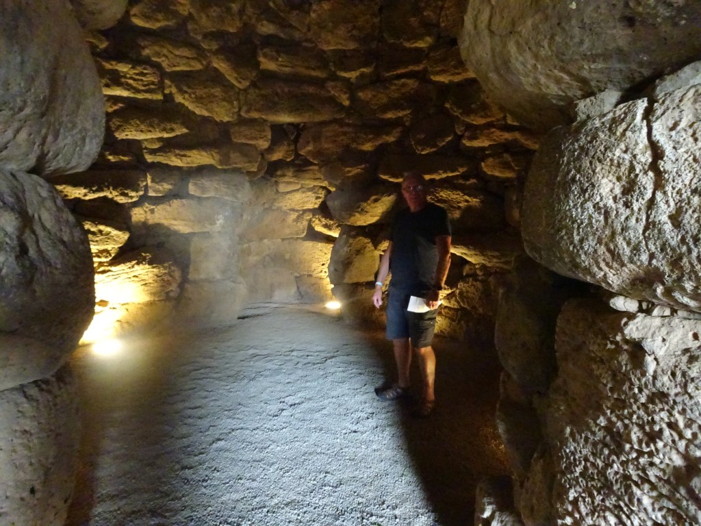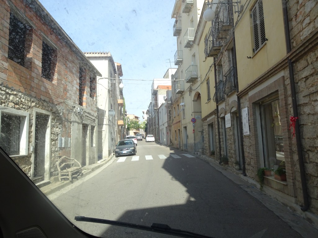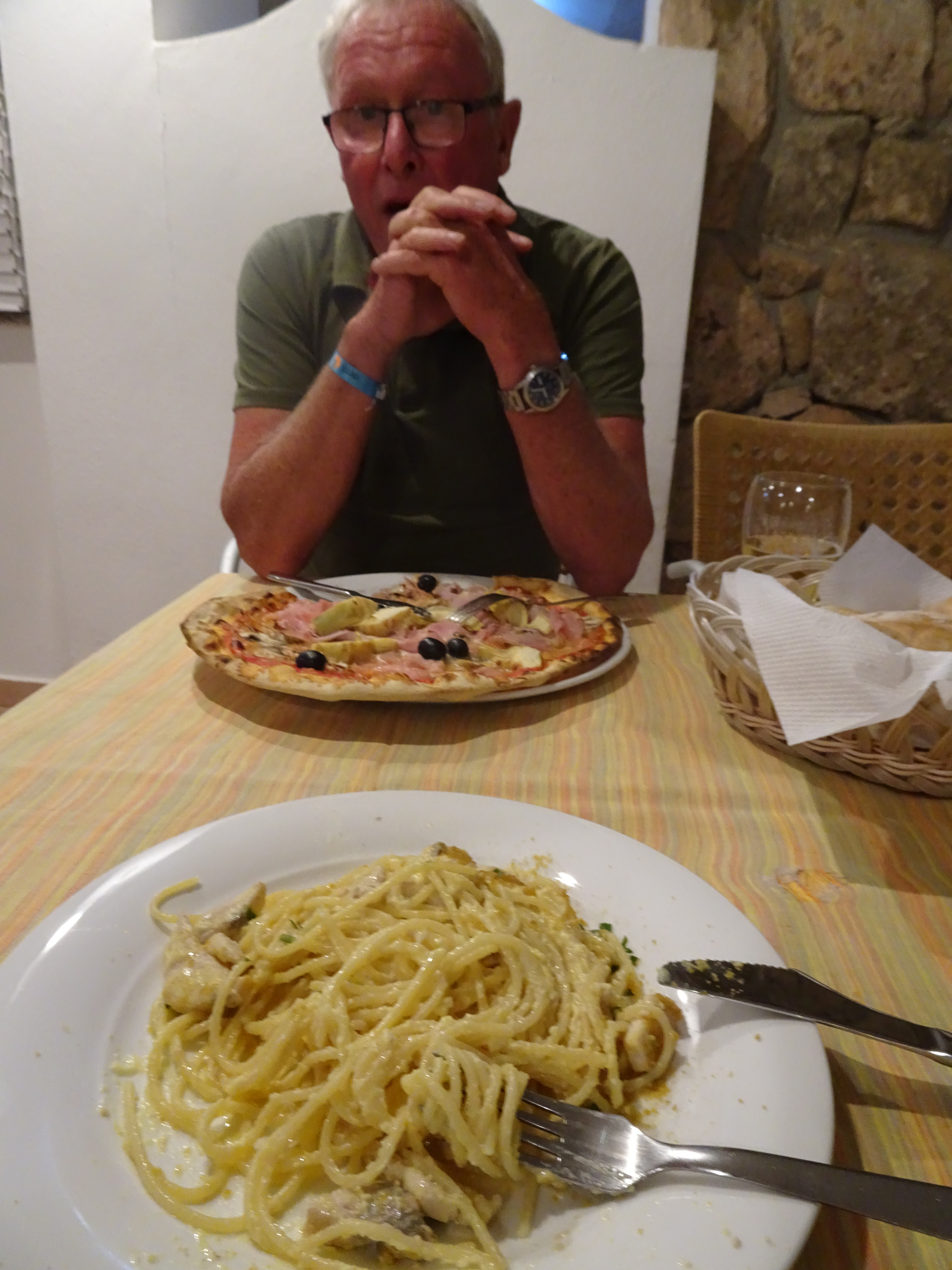 If you cross the sand into the corner of the small, sea-front beach there are steps up to a cliffside walkway. It doesn’t go all that far but is fun to walk round, especially with choppy waves splashing up, although the only option is to return via the same route. After this, we wander the town a bit. It’s pleasant enough, with some attractive squares and plenty of gift shops. Then it’s on to have a look where we’ll be getting the ferry and to ‘Eurospin’ for groceries.