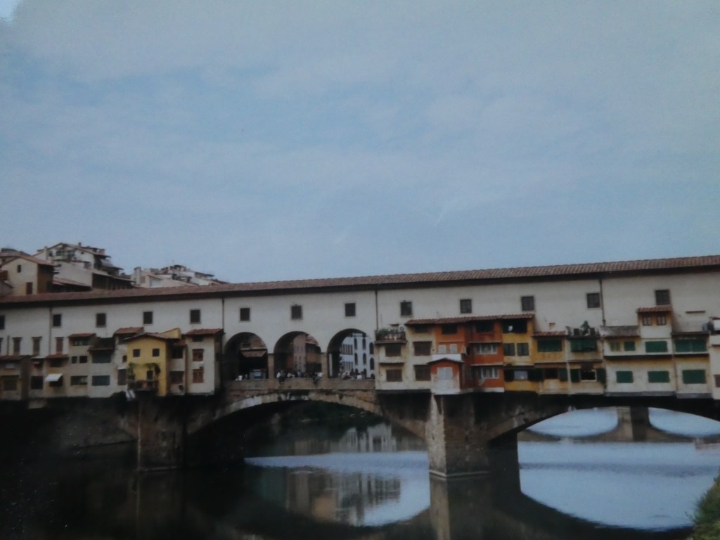 In one of those bizarre coincidences we happened upon one of my daughter’s school friends as we walked past a row of tourist stalls on the way to the Ponte Vecchio. She enthused to us over the array of tourist tat on display whilst standing with her back to Florence’s famously beautiful bridge with its umber and pink hues, straddling the Arno river. Walking across makes you think of how London Bridge must have been when it was similarly lined with shops and dwellings, their overhanging eves almost meeting in the middle.