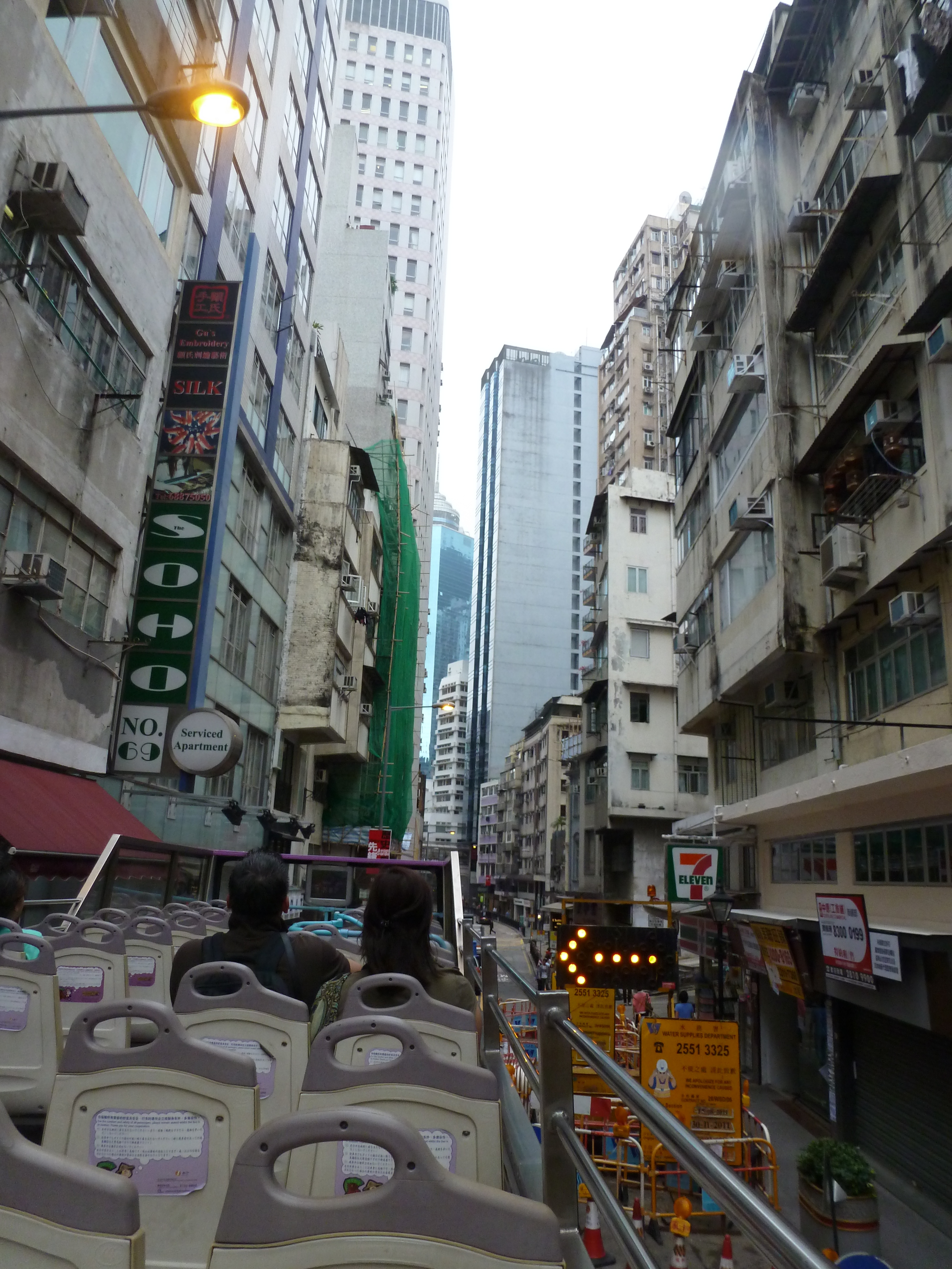 On the Hong Kong Island side there were more bustling alleys full of food stalls and I wondered how it was possible to sell such an abundance of meals and snacks. But then, the entire place is packed solid with people, notoriously so, as is evident in the forest of skyscrapers soaring up to dizzying heights. New blocks were being constructed everywhere despite the fact that there didn’t seem to be any more room for them. The scaffolding for these constructions was all of bamboo poles, which was an eye-opener!