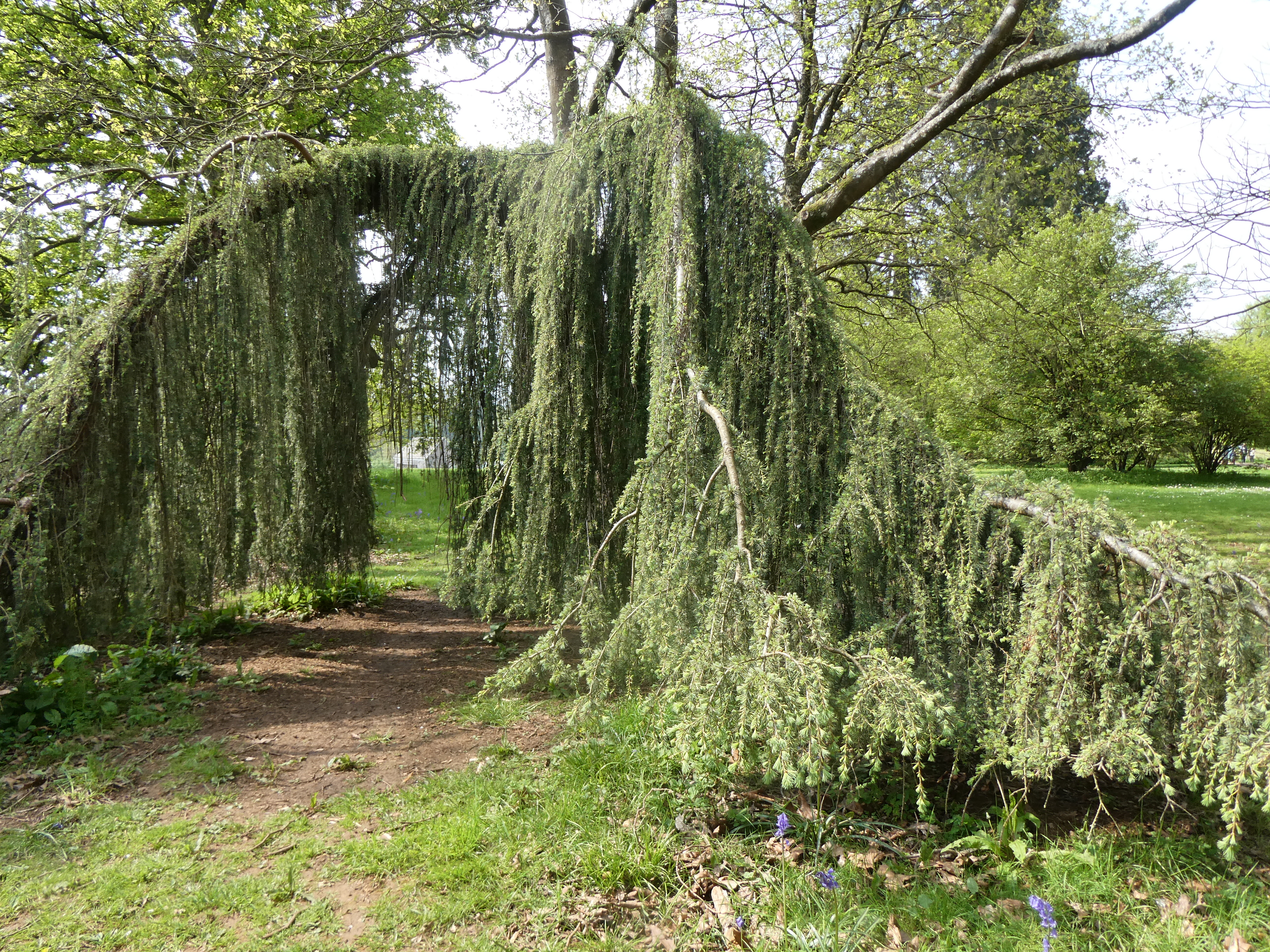 After a wrong turn or two, we find the pond, which has fish, lilies, timber seating areas and, in the centre of the water, a spectacular larch. Larches are unique in that they are conifers but shed their needles in the winter. Before this, though, they turn a bright orange. This single tree’s reflection on the water is amazing.