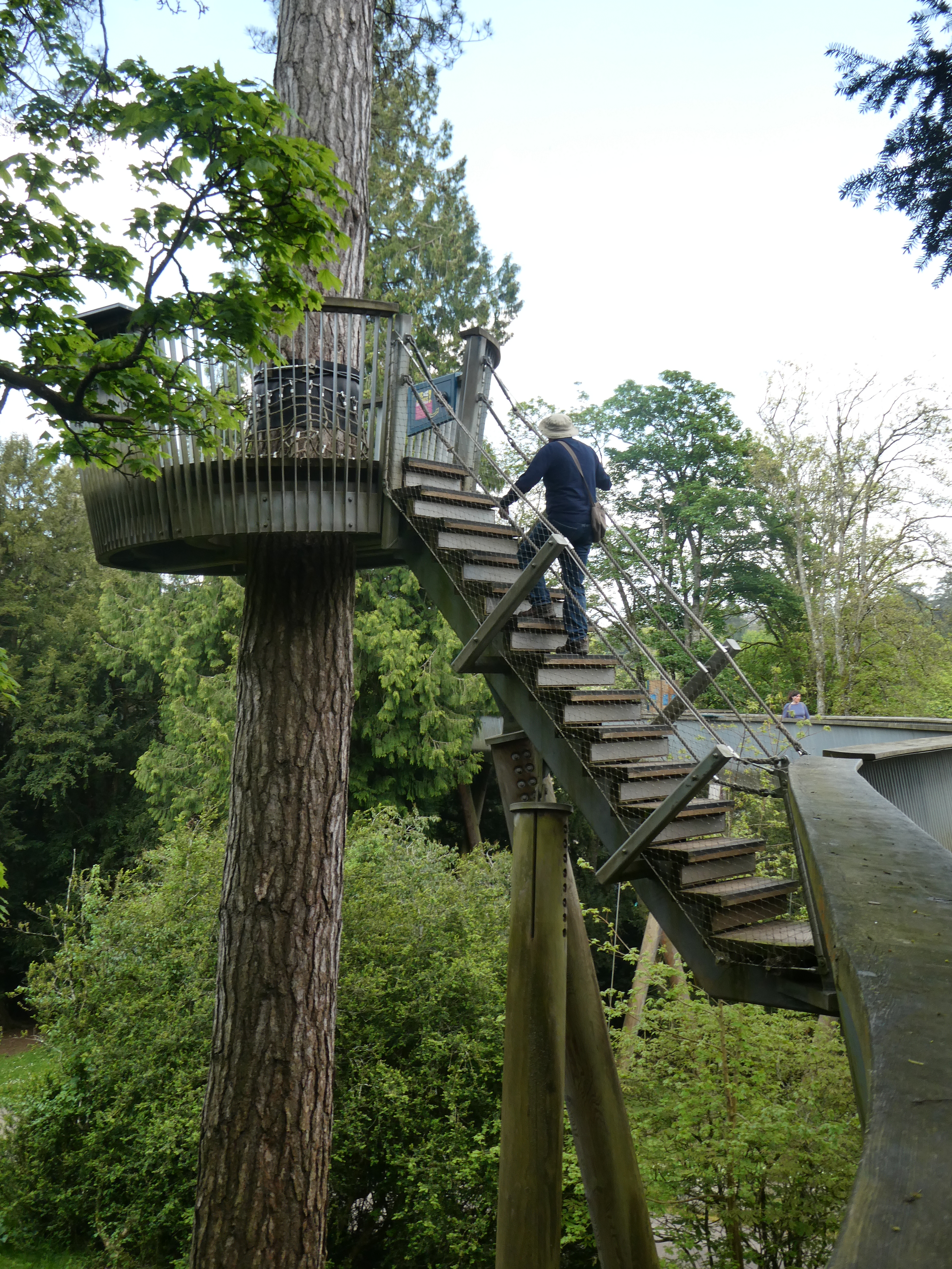 Around the outside of the pond, in the bog areas, there is towering Gunnera, just starting to decay, the enormous leaves beginning to blacken. Further on, beyond and above the pond area we walk through a tunnel of tall bamboo.